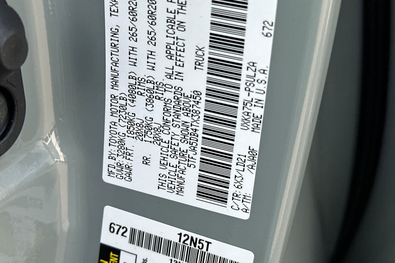- VIN : 5TFJA5DB4TX387450