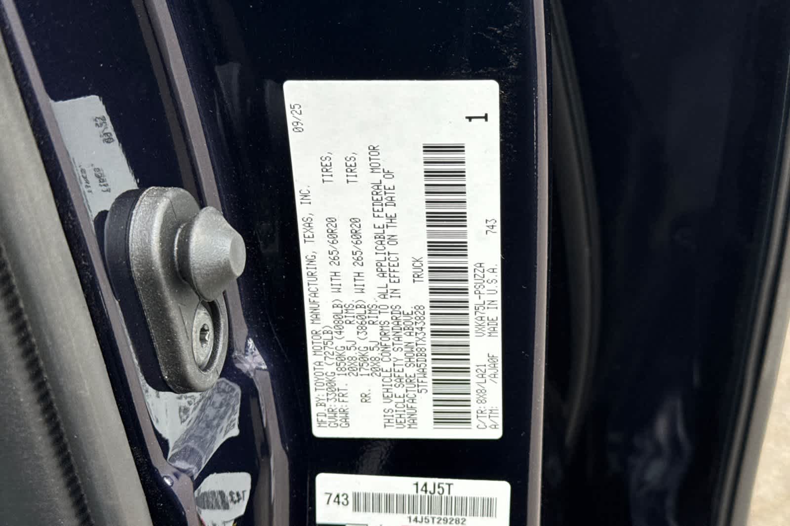- VIN : 5TFWA5DB8TX343828