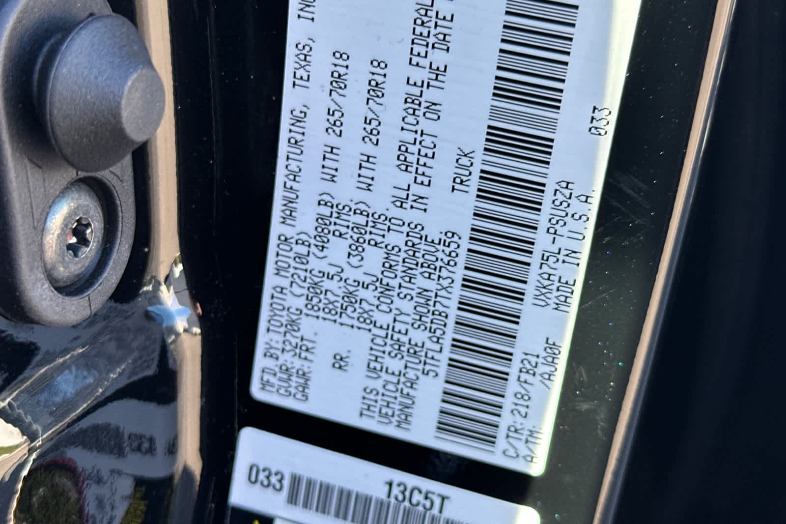 - VIN : 5TFLA5DB7TX376659