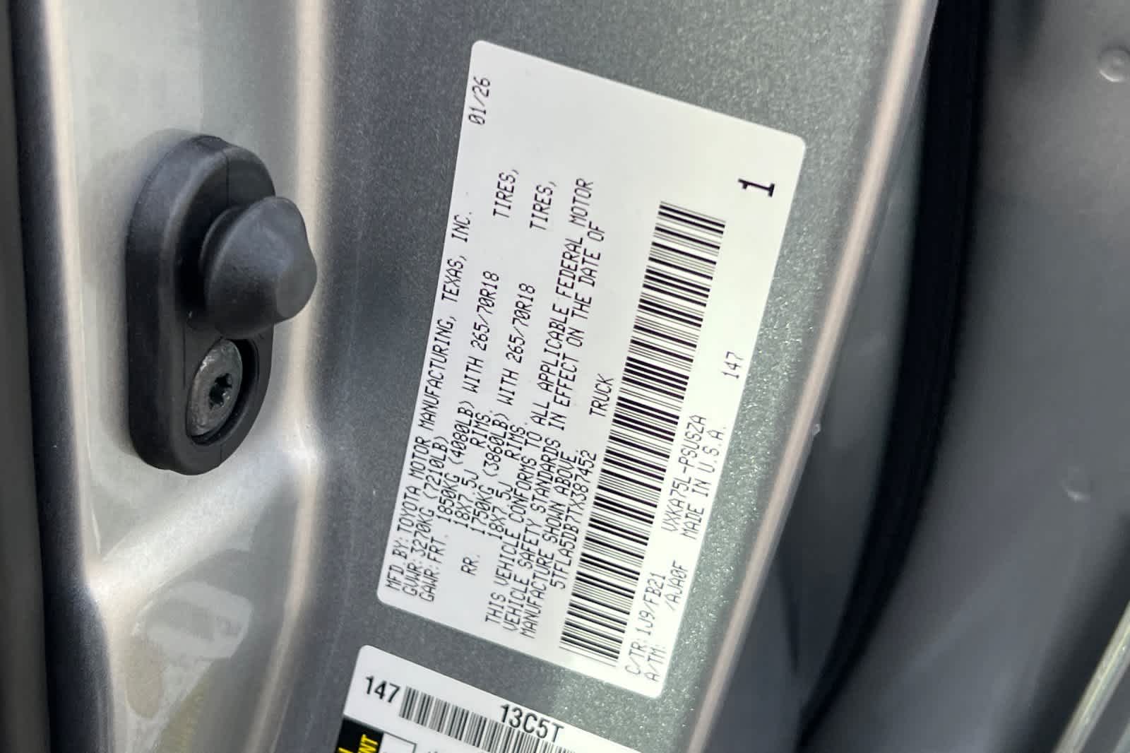 - VIN : 5TFLA5DB7TX387452