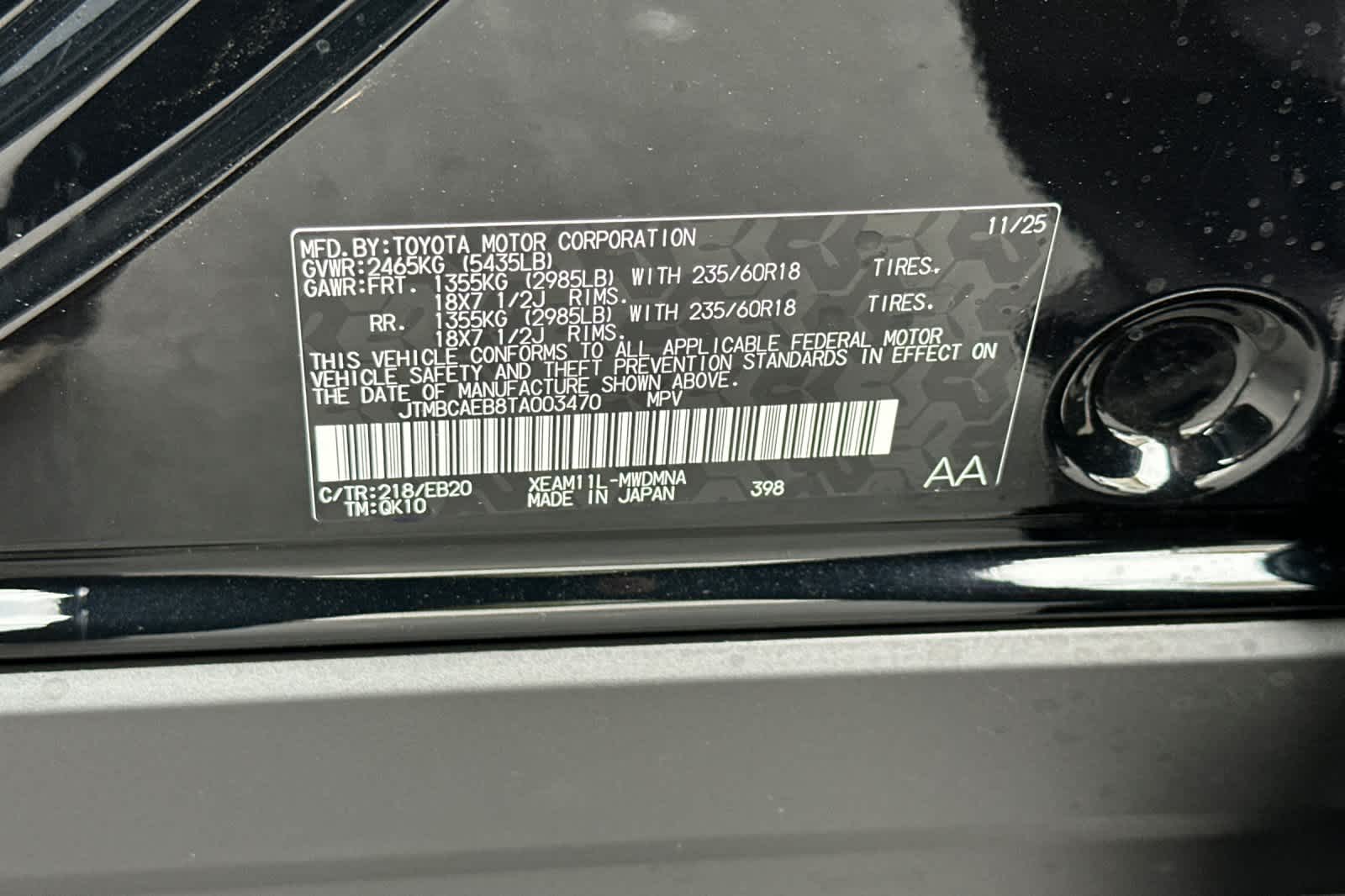 - VIN : JTMBCAEB8TA003470