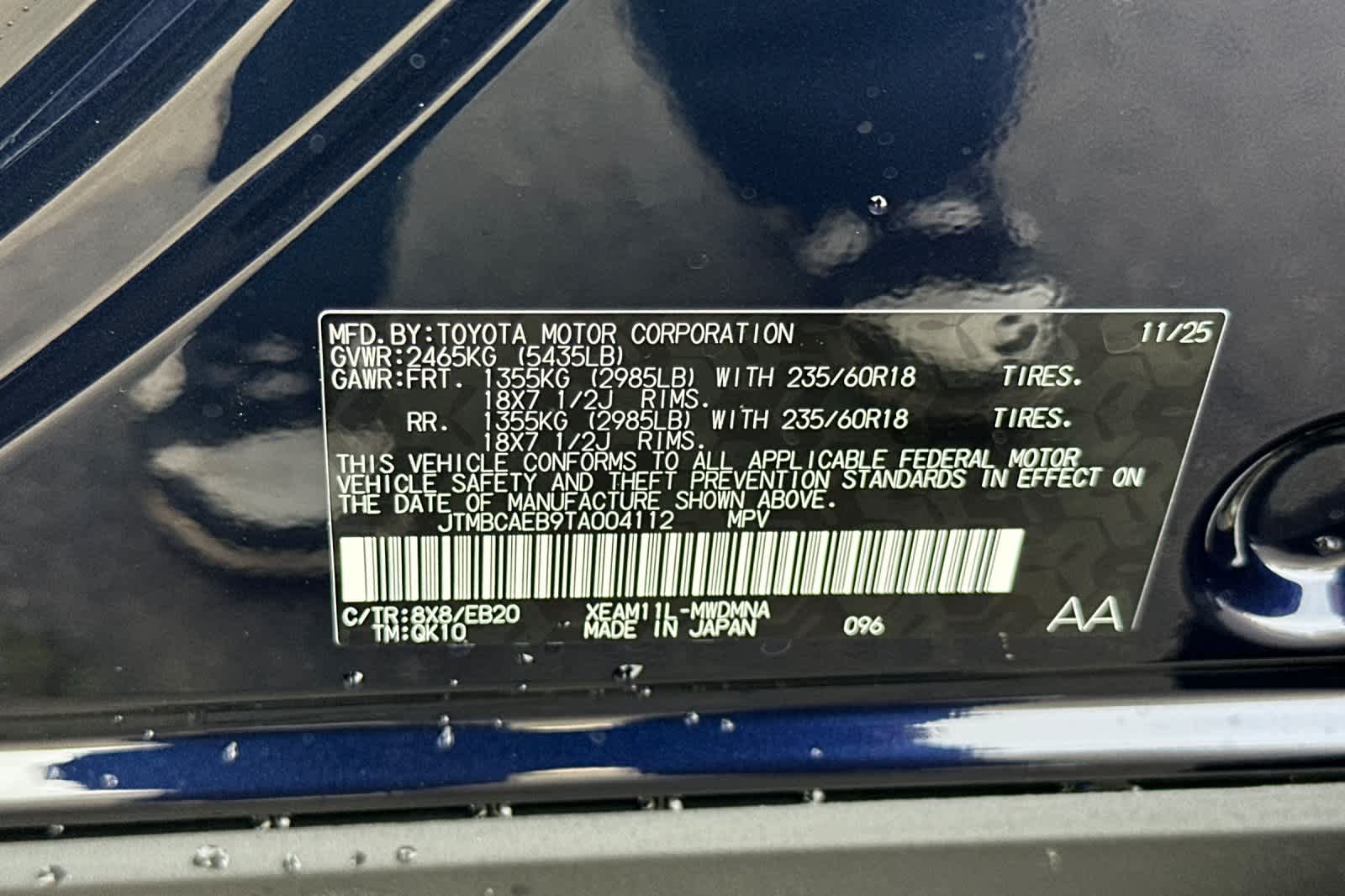 - VIN : JTMBCAEB9TA004112
