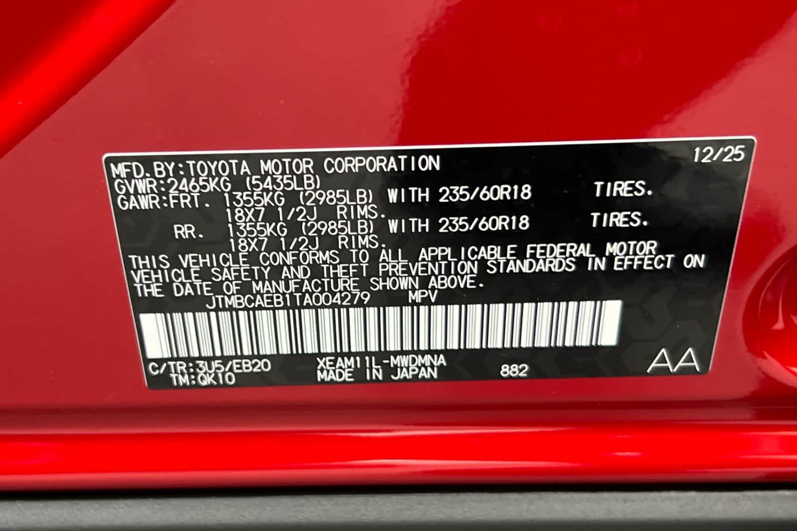 - VIN : JTMBCAEB1TA004279