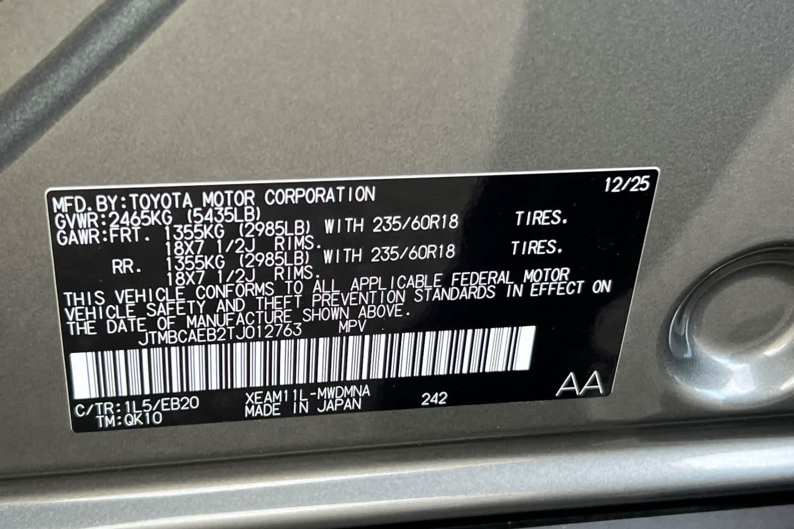 - VIN : JTMBCAEB2TJ012763