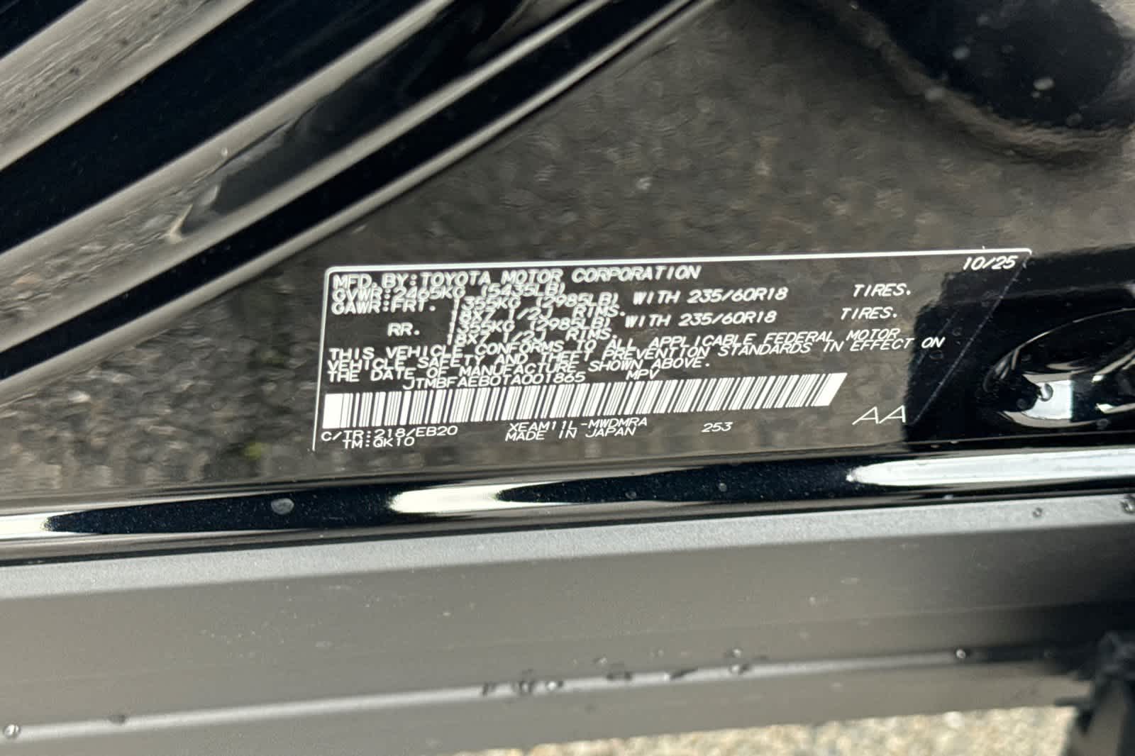 - VIN : JTMBFAEB0TA001865
