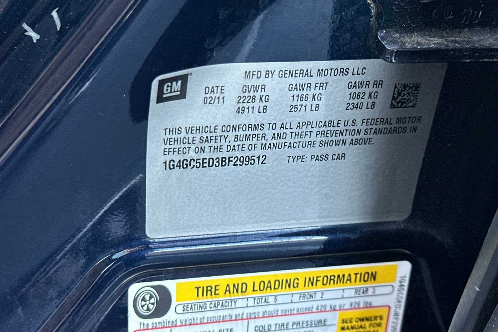 - VIN : 1G4GC5ED3BF299512