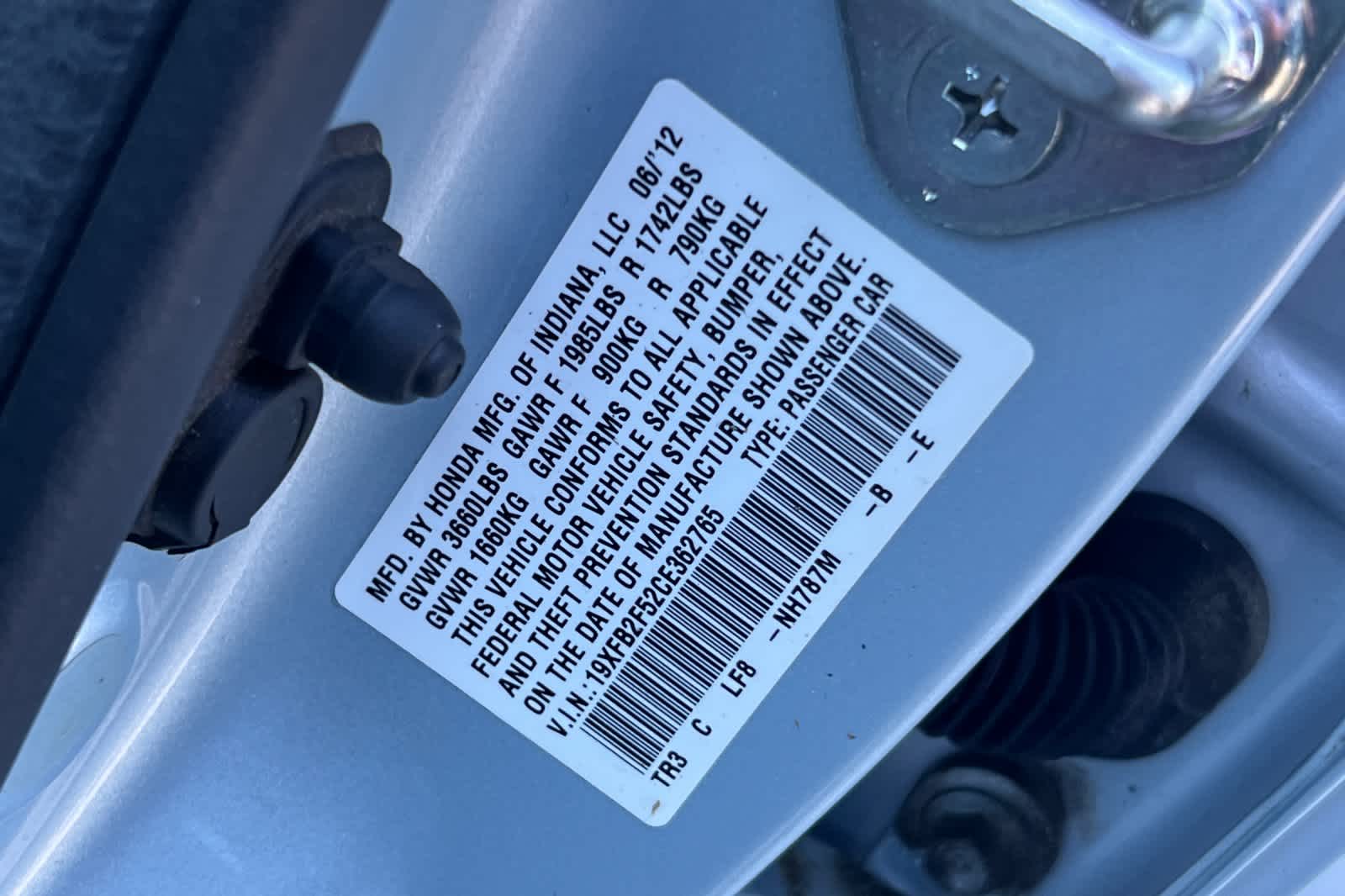 - VIN : 19XFB2F52CE362765