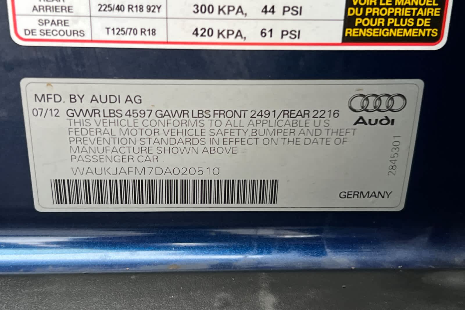 - VIN : WAUKJAFM7DA020510