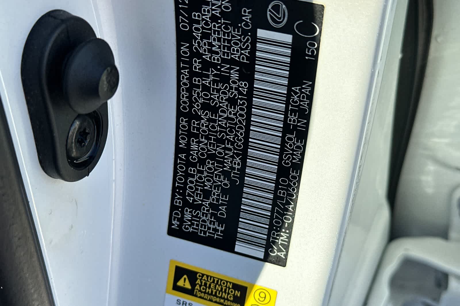 - VIN : JTHBK1GG6D2003148