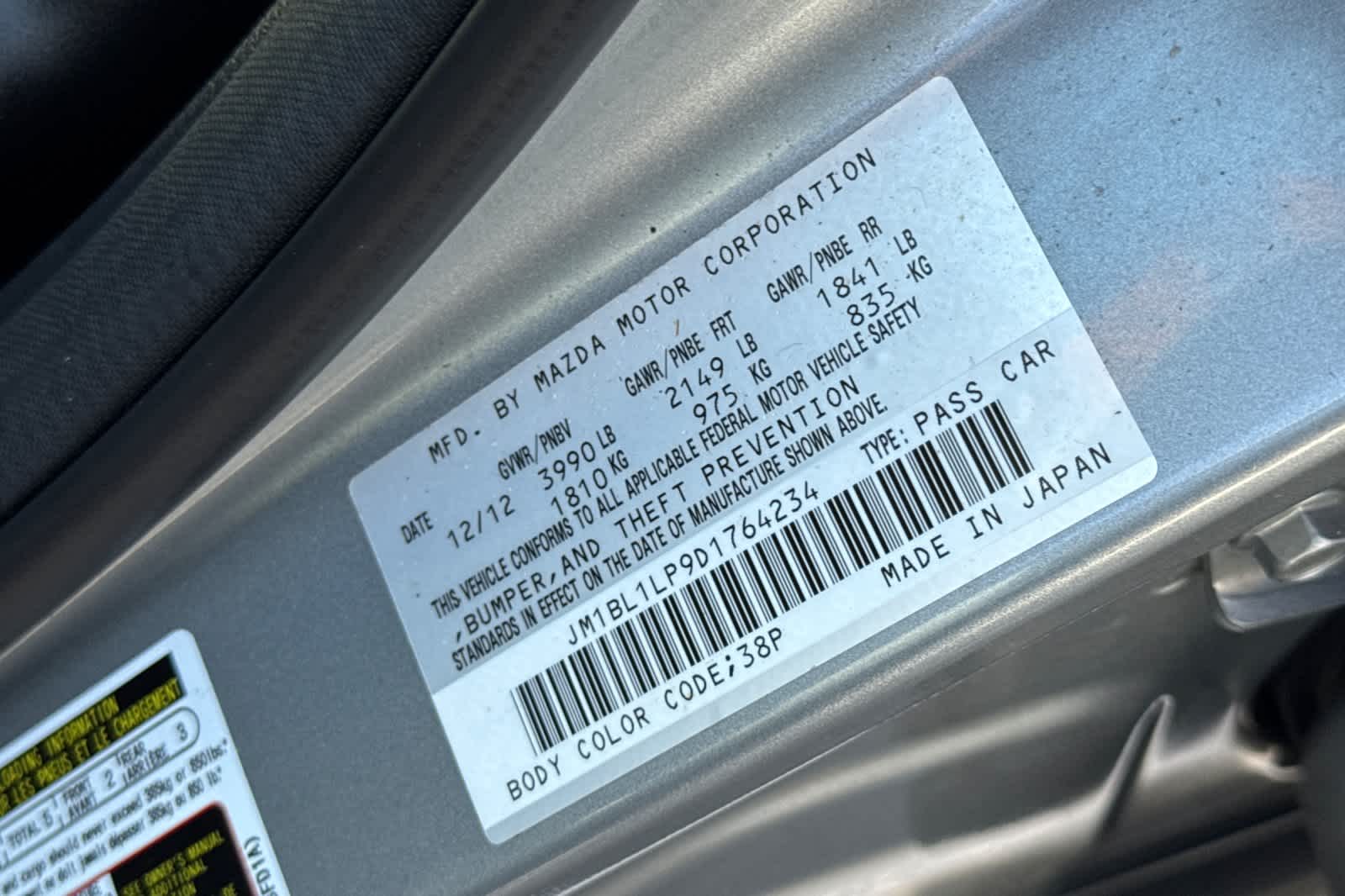 - VIN : JM1BL1LP9D1764234