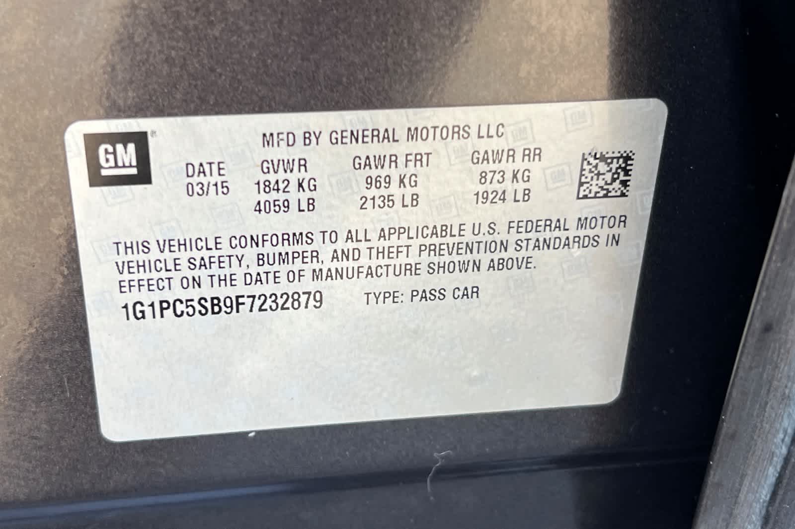 - VIN : 1G1PC5SB9F7232879