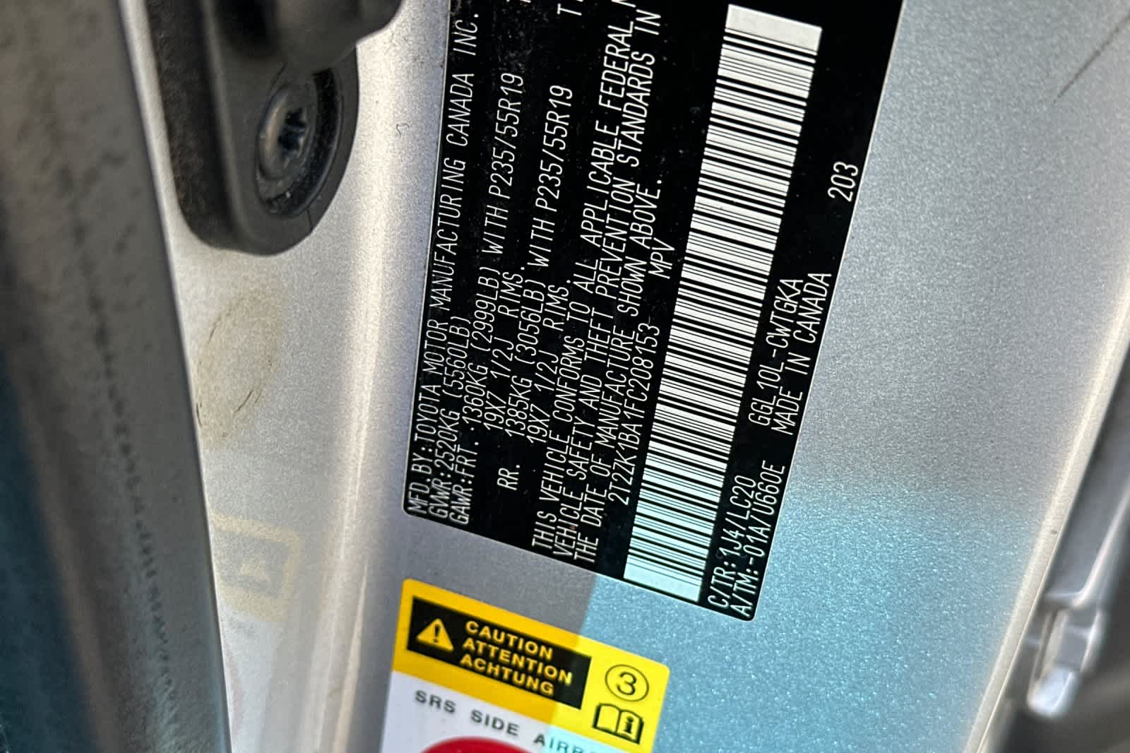 - VIN : 2T2ZK1BA1FC208153