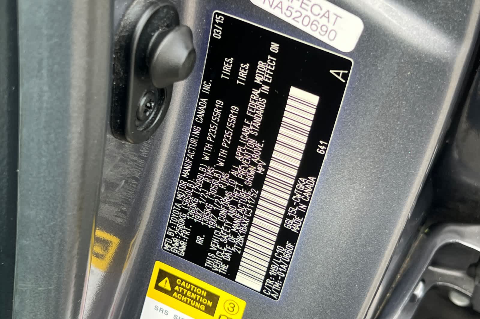 - VIN : 2T2BK1BAXFC311752