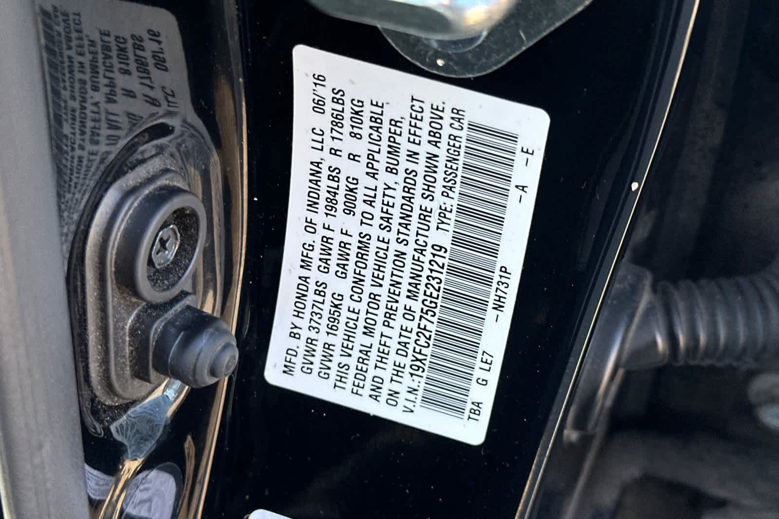 - VIN : 19XFC2F75GE231219