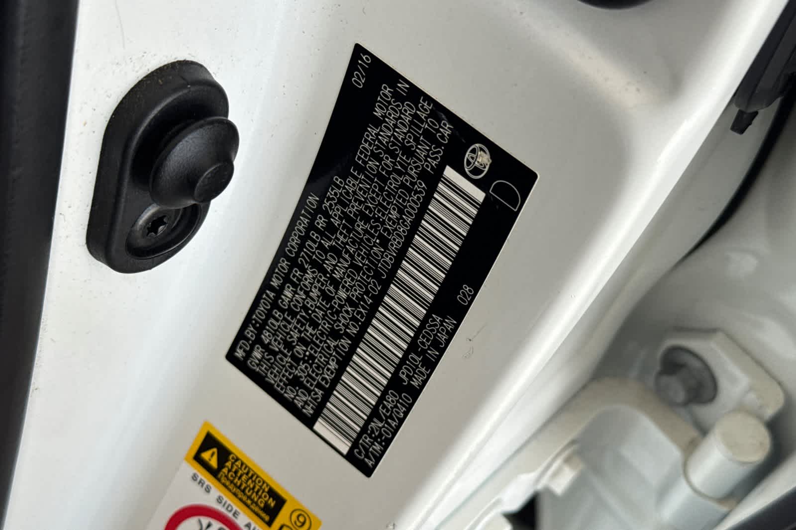 - VIN : JTDBVRBD8GA000539