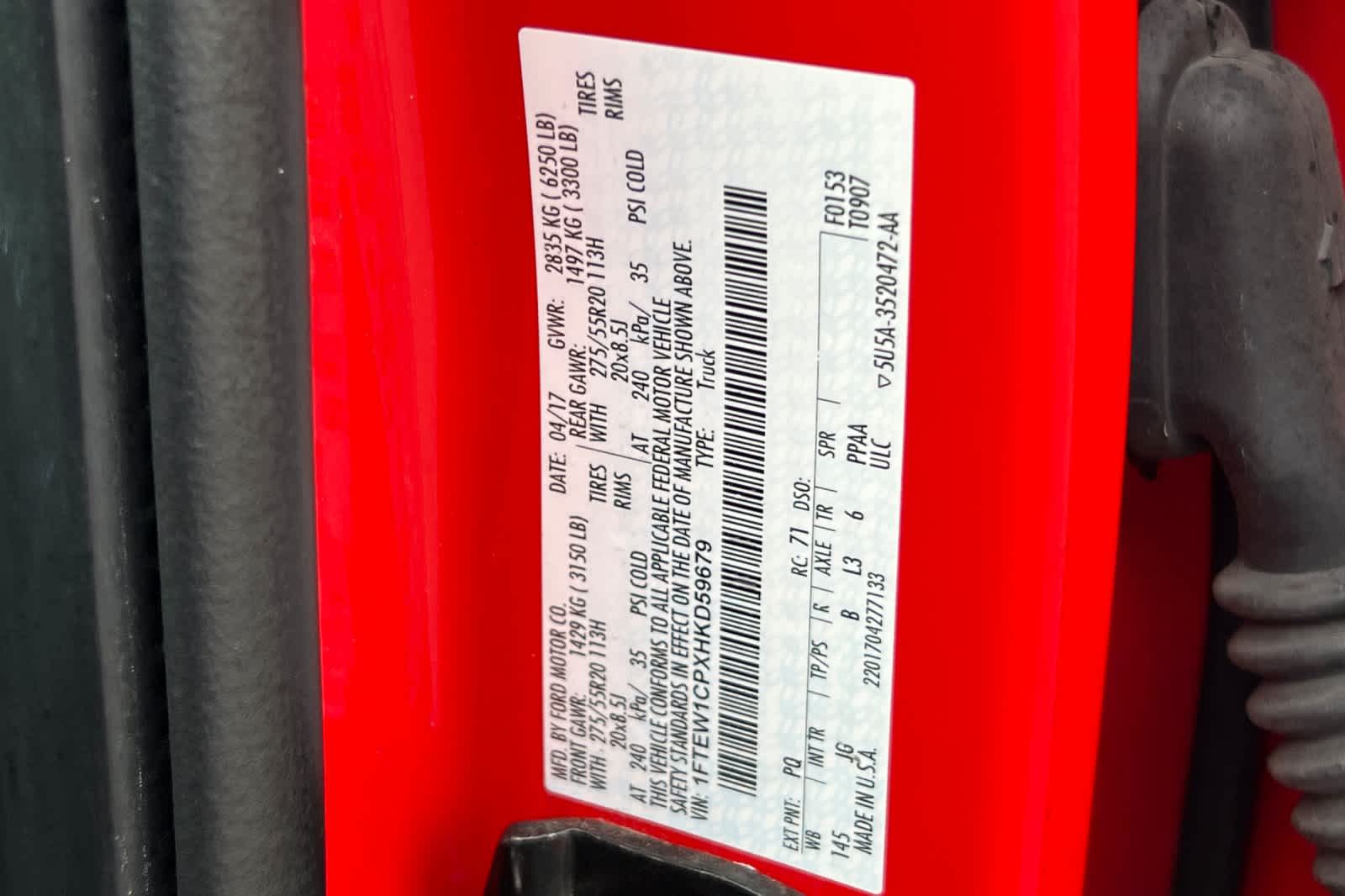 - VIN : 1FTEW1CPXHKD59679