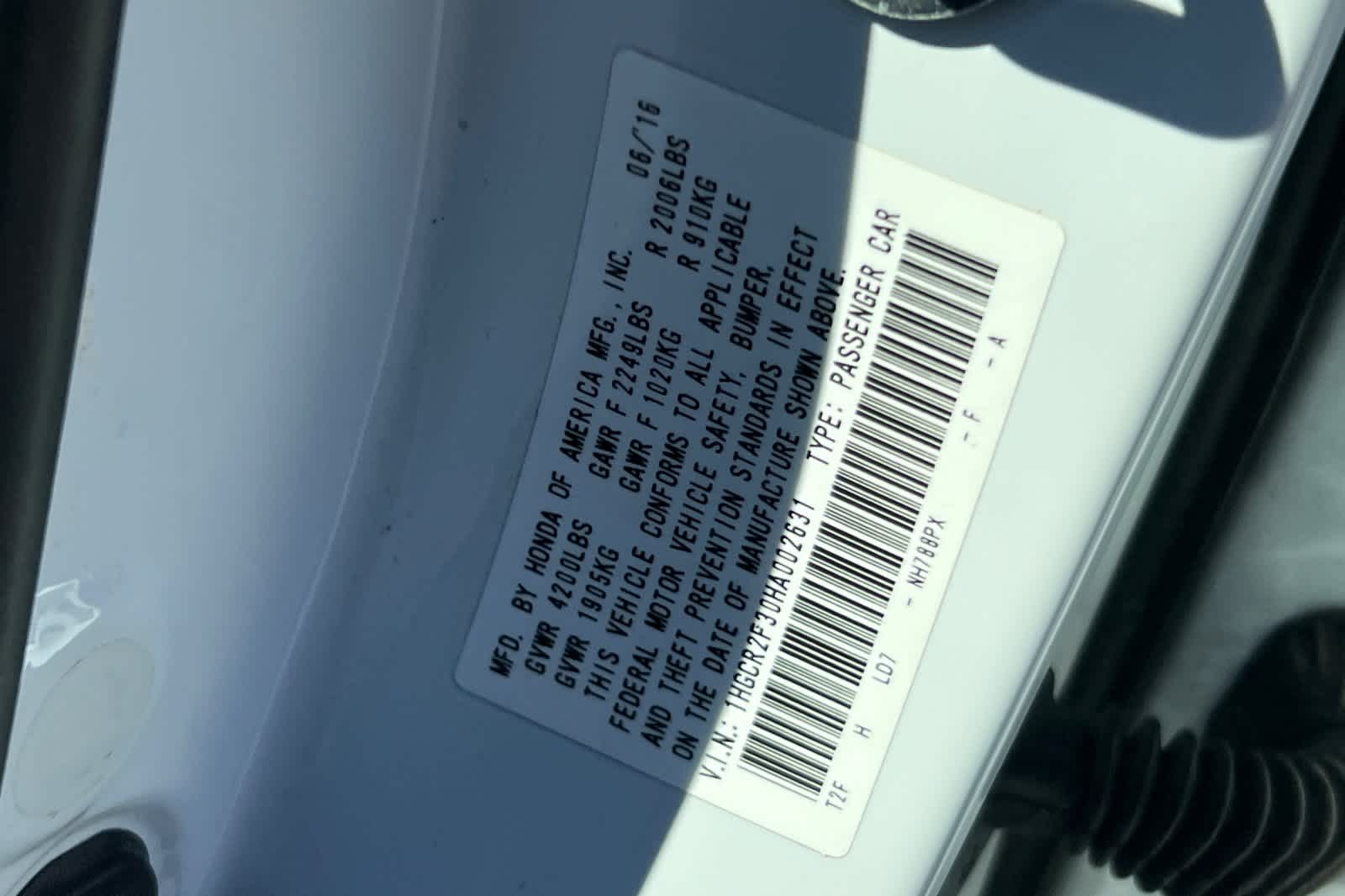 - VIN : 1HGCR2F30HA002631