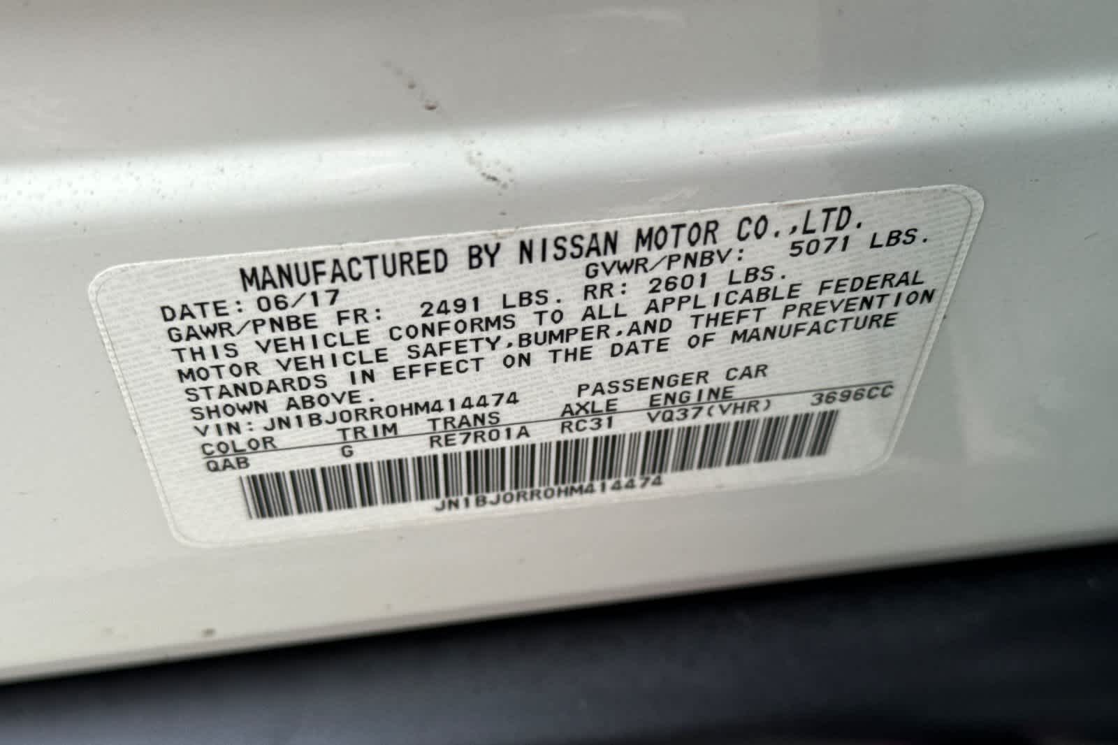 - VIN : JN1BJ0RR0HM414474