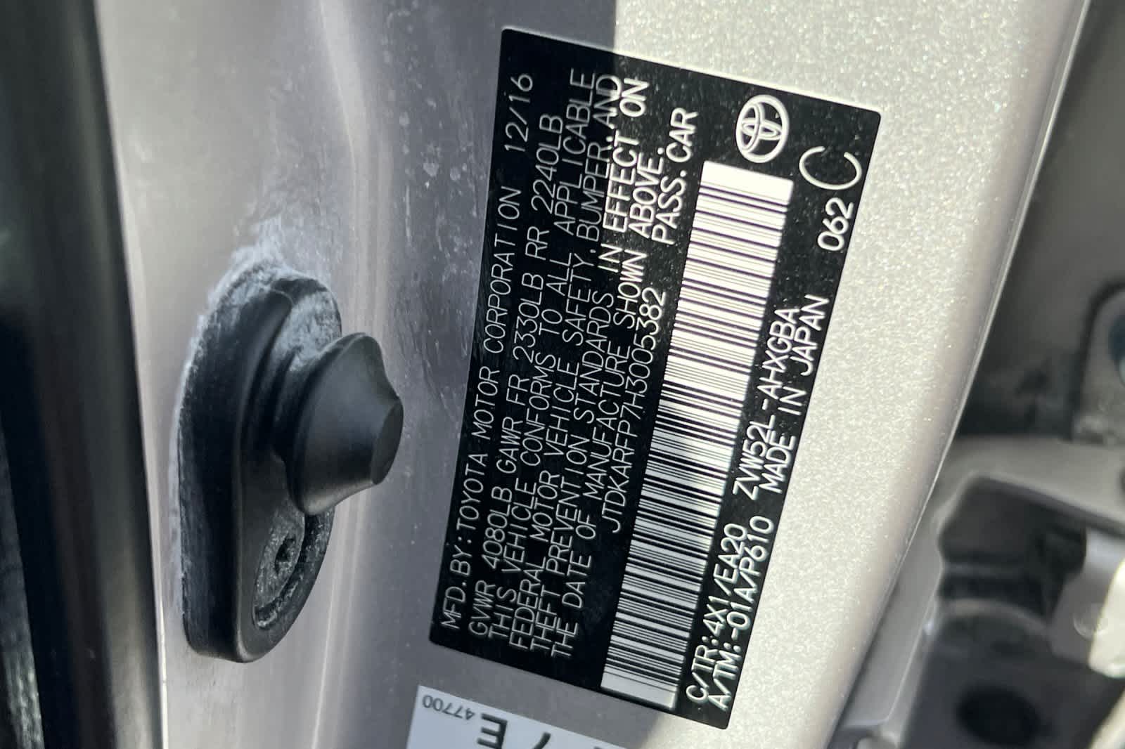 - VIN : JTDKARFP7H3005382