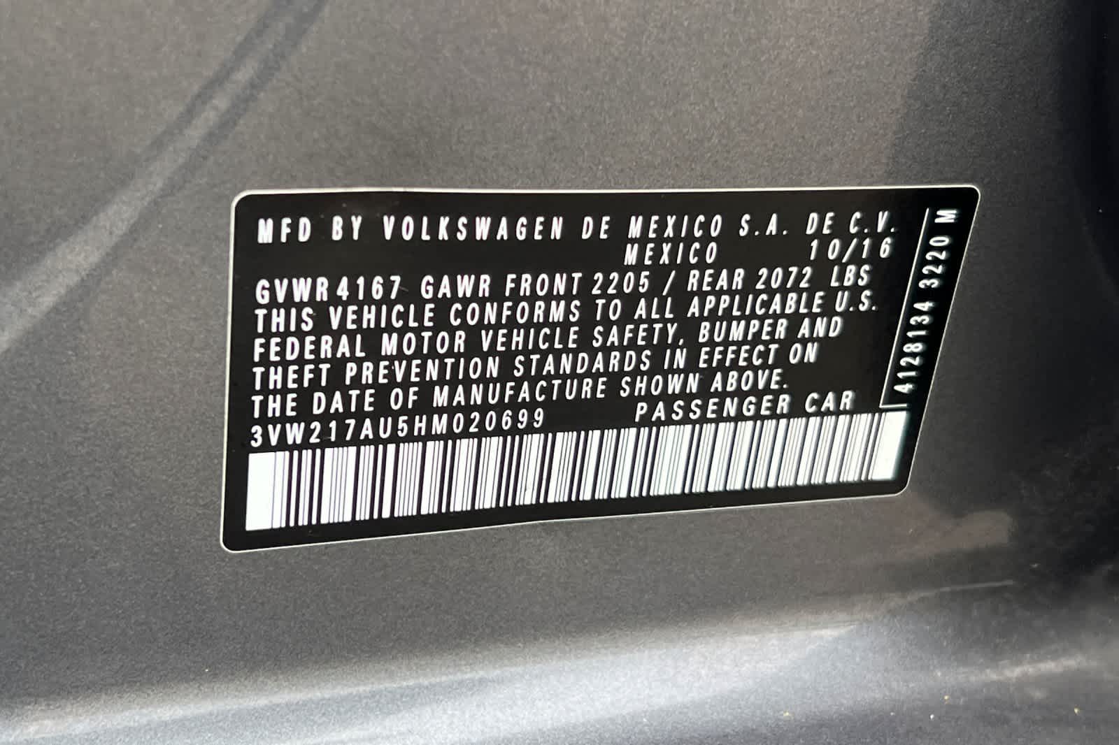 - VIN : 3VW217AU5HM020699