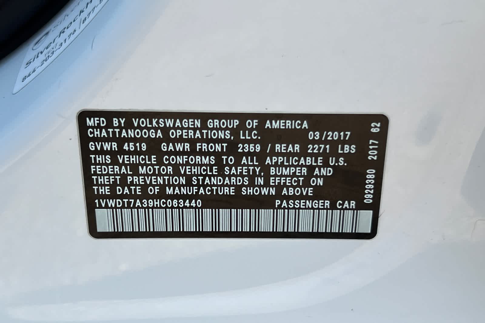 - VIN : 1VWDT7A39HC063440