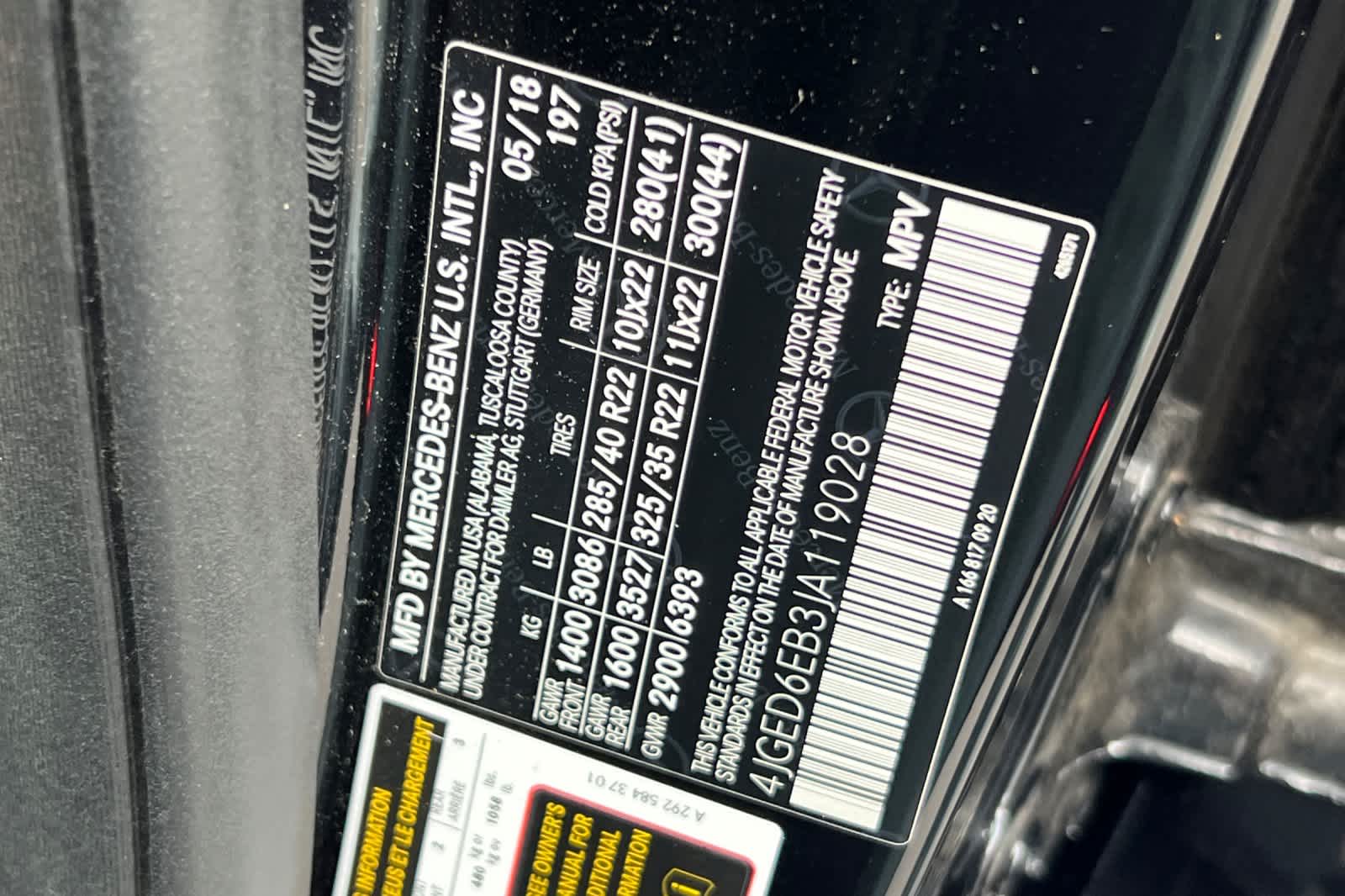 - VIN : 4JGED6EB3JA119028