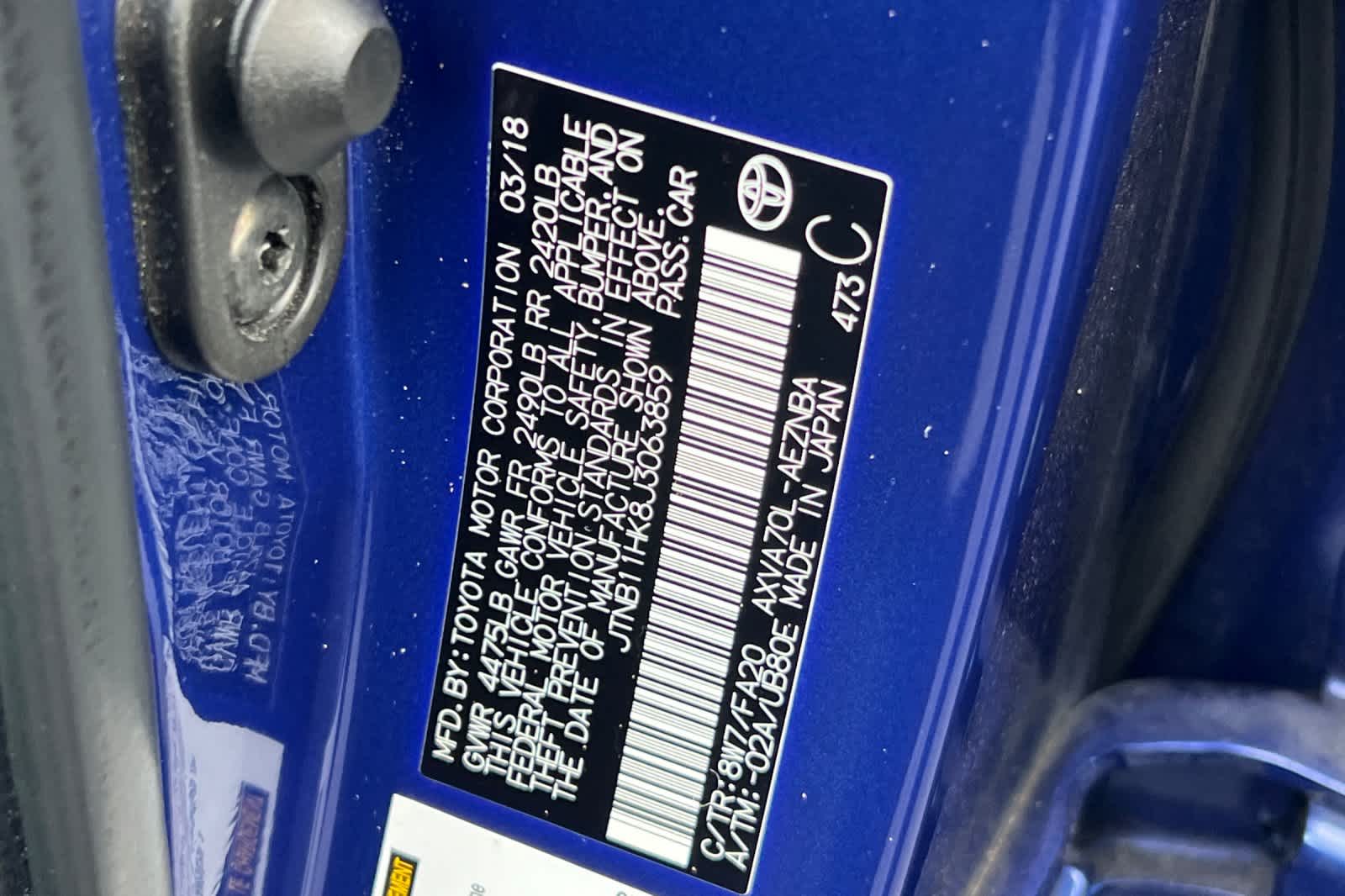 - VIN : JTNB11HK8J3063859