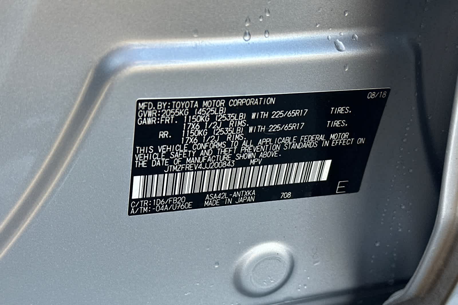- VIN : JTMZFREV4JJ200843