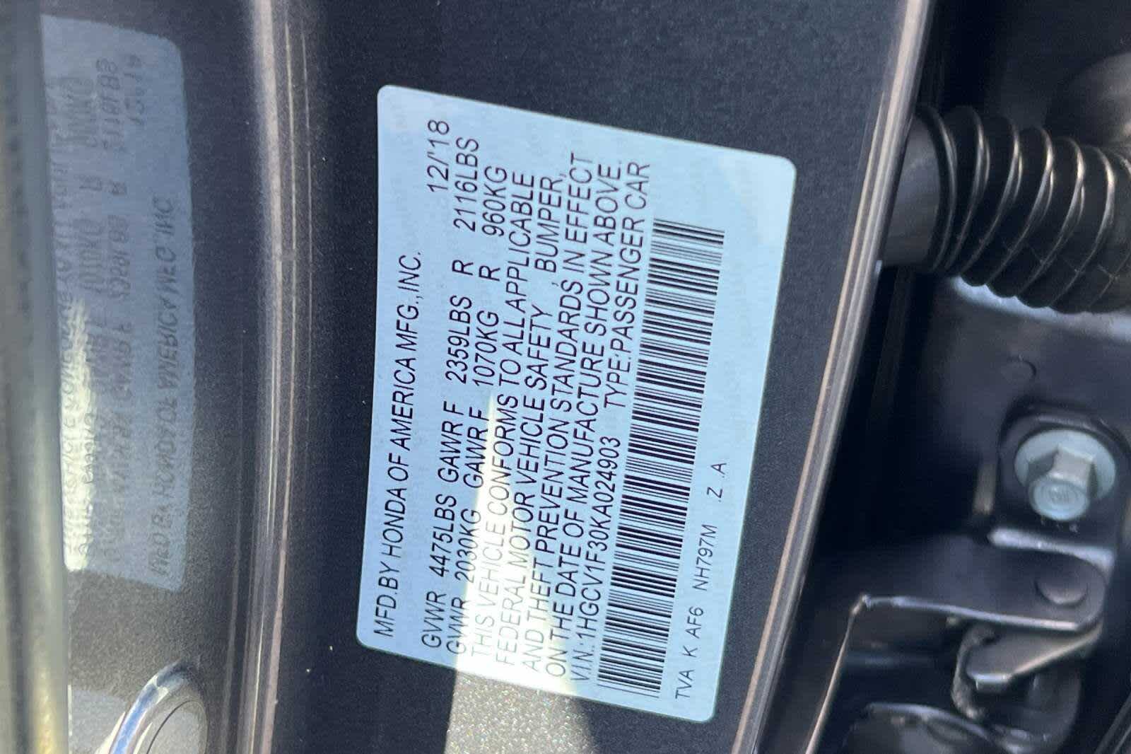 - VIN : 1HGCV1F30KA024903