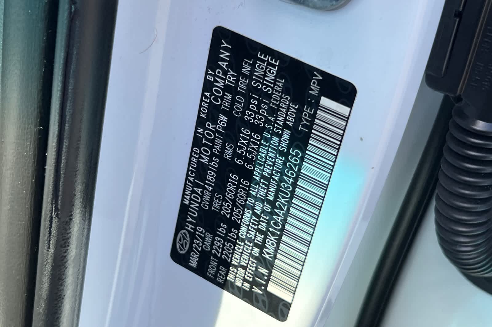 - VIN : KM8K1CAA2KU346265