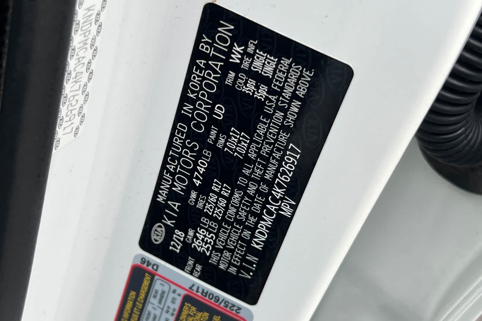 - VIN : KNDPMCAC4K7626917
