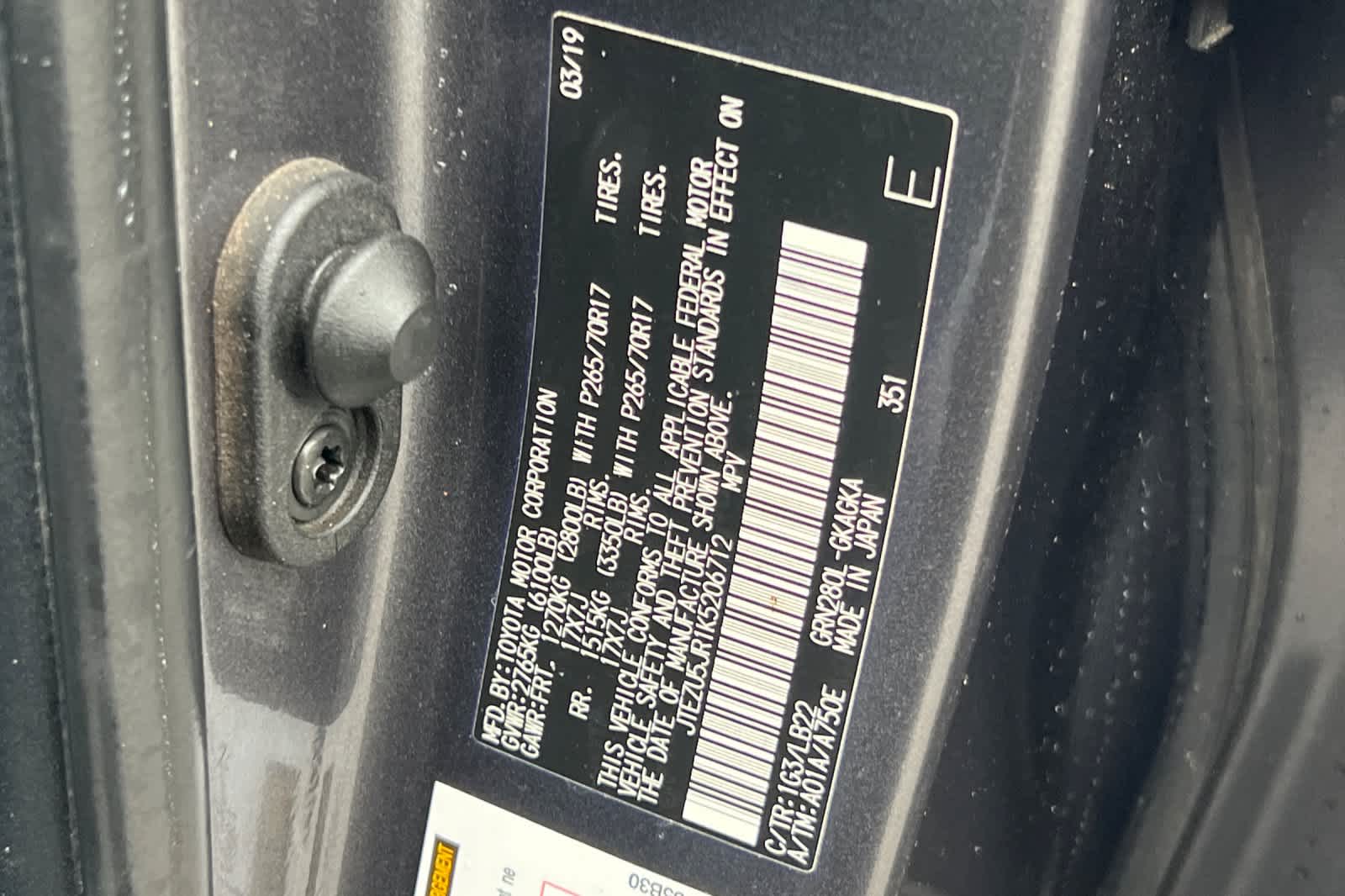 - VIN : JTEZU5JR1K5206712