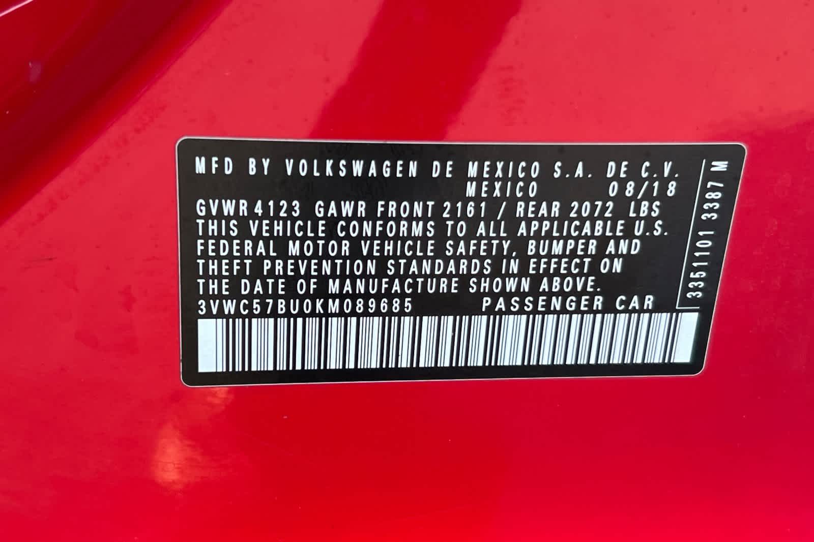 - VIN : 3VWC57BU0KM089685