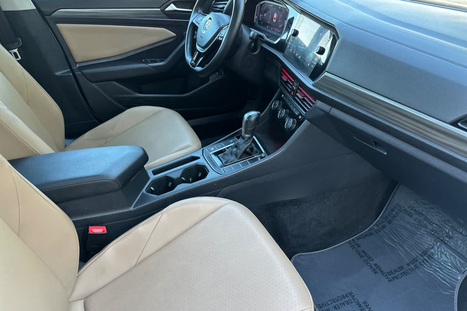 Pure White 2019 Volkswagen Jetta SEL FWD 8-Speed Automatic with Tiptronic 1.4L TSI Dark Beige Premium Synthetic.