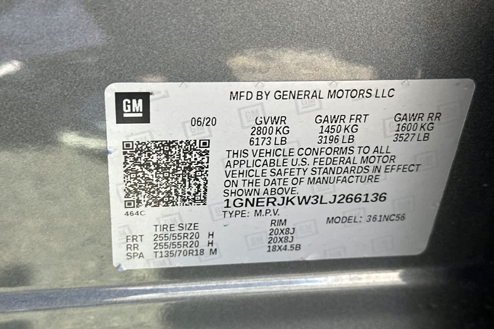 - VIN : 1GNERJKW3LJ266136