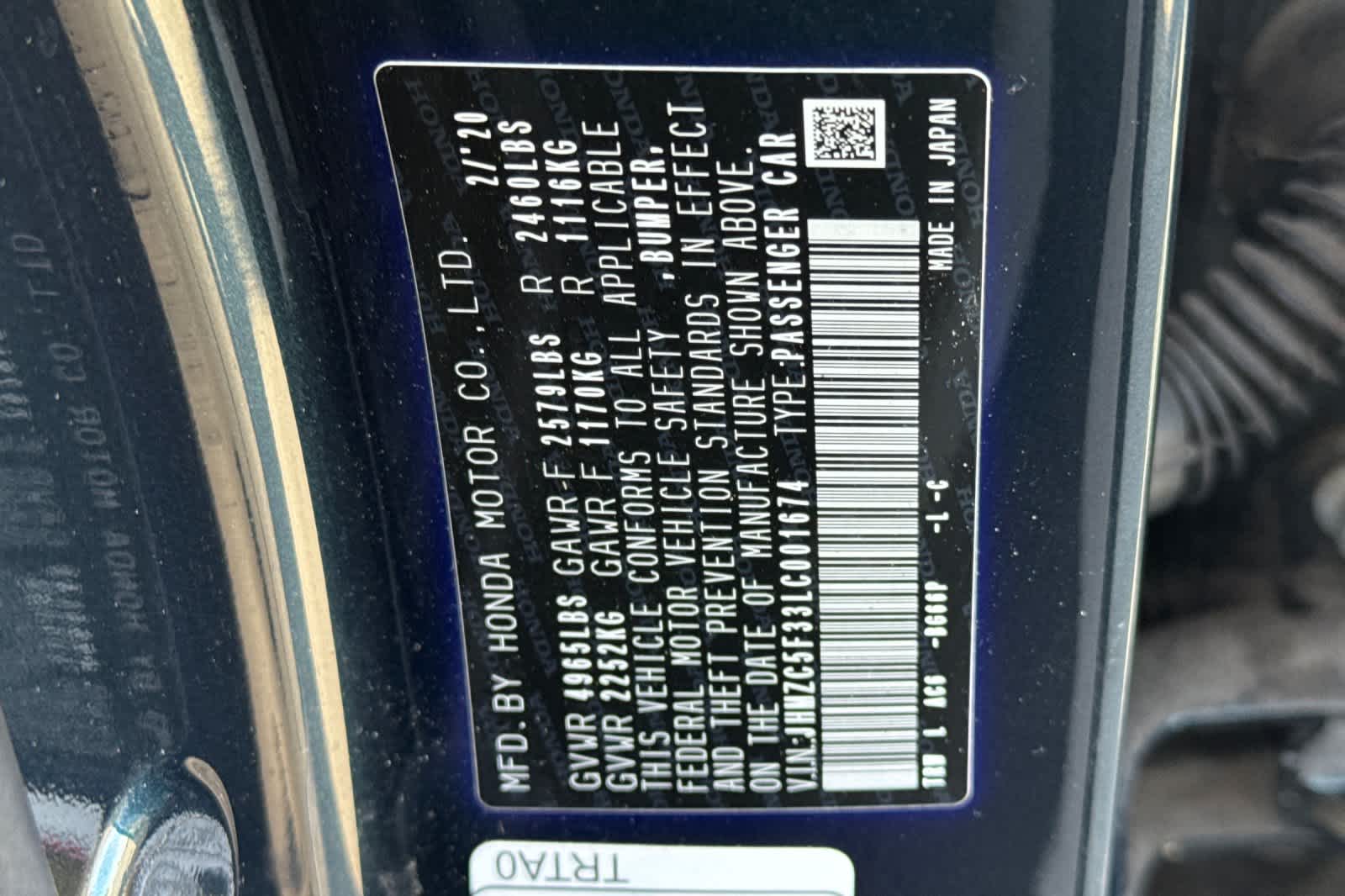 - VIN : JHMZC5F33LC001674