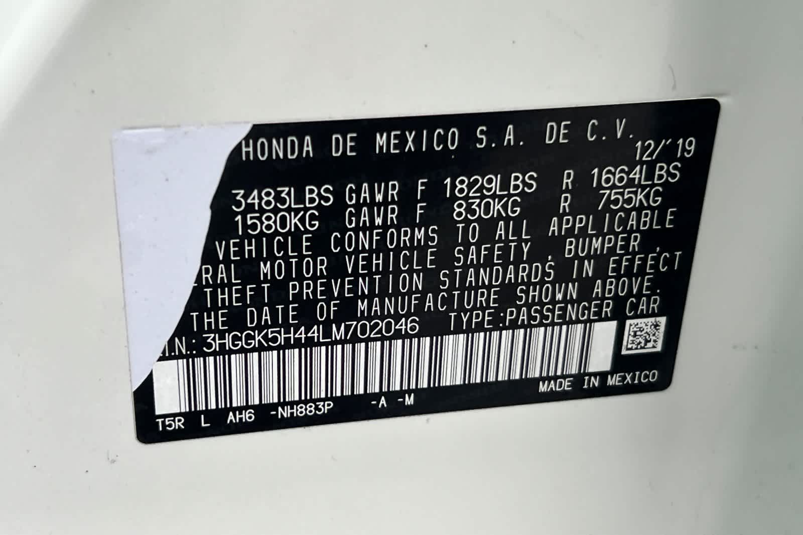 - VIN : 3HGGK5H44LM702046