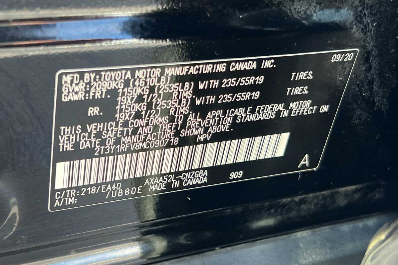 - VIN : 2T3Y1RFV8MC090718