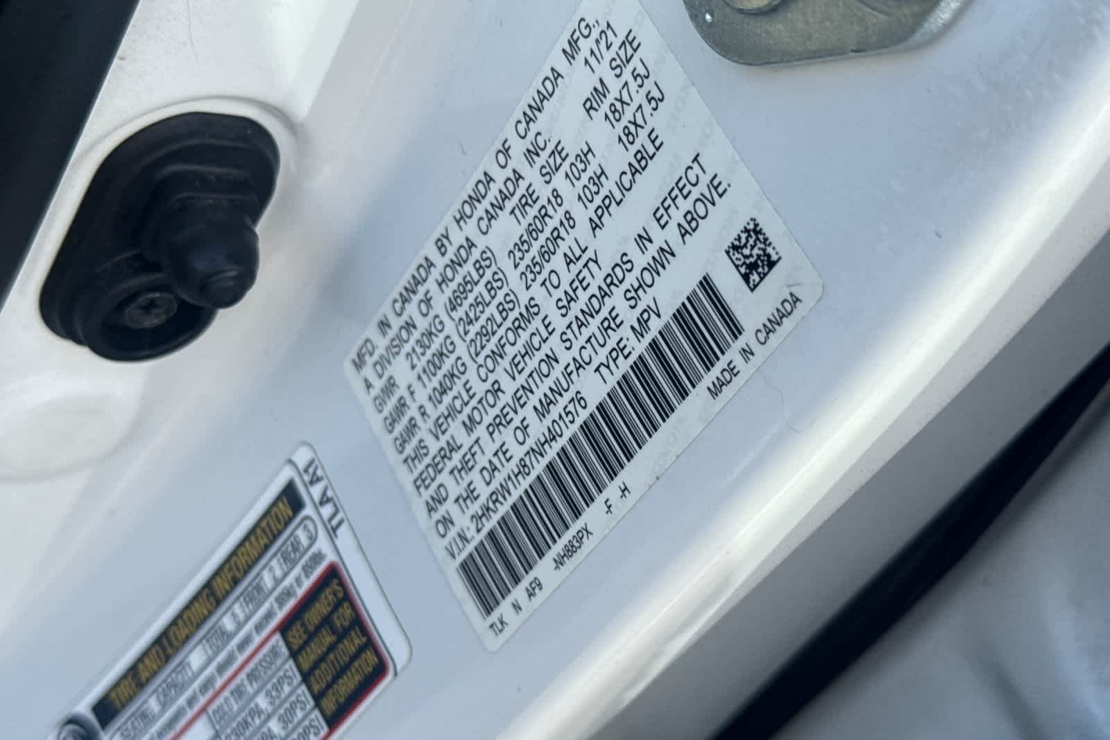 - VIN : 2HKRW1H87NH401576