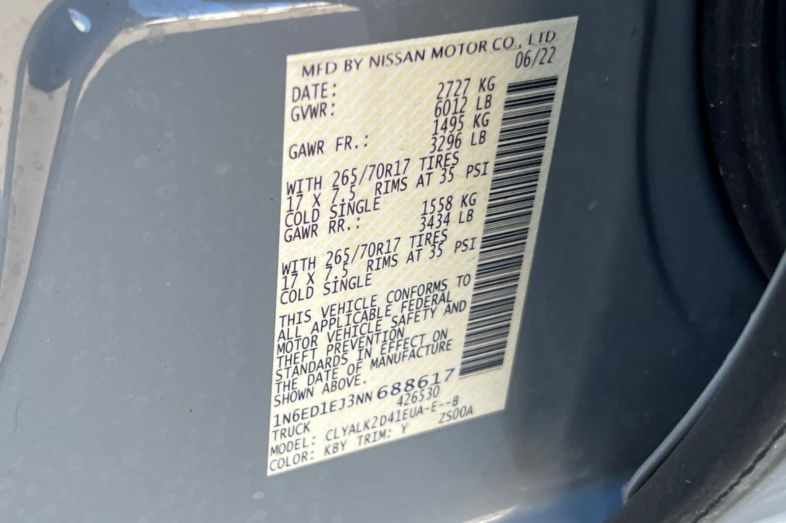 - VIN : 1N6ED1EJ3NN688617