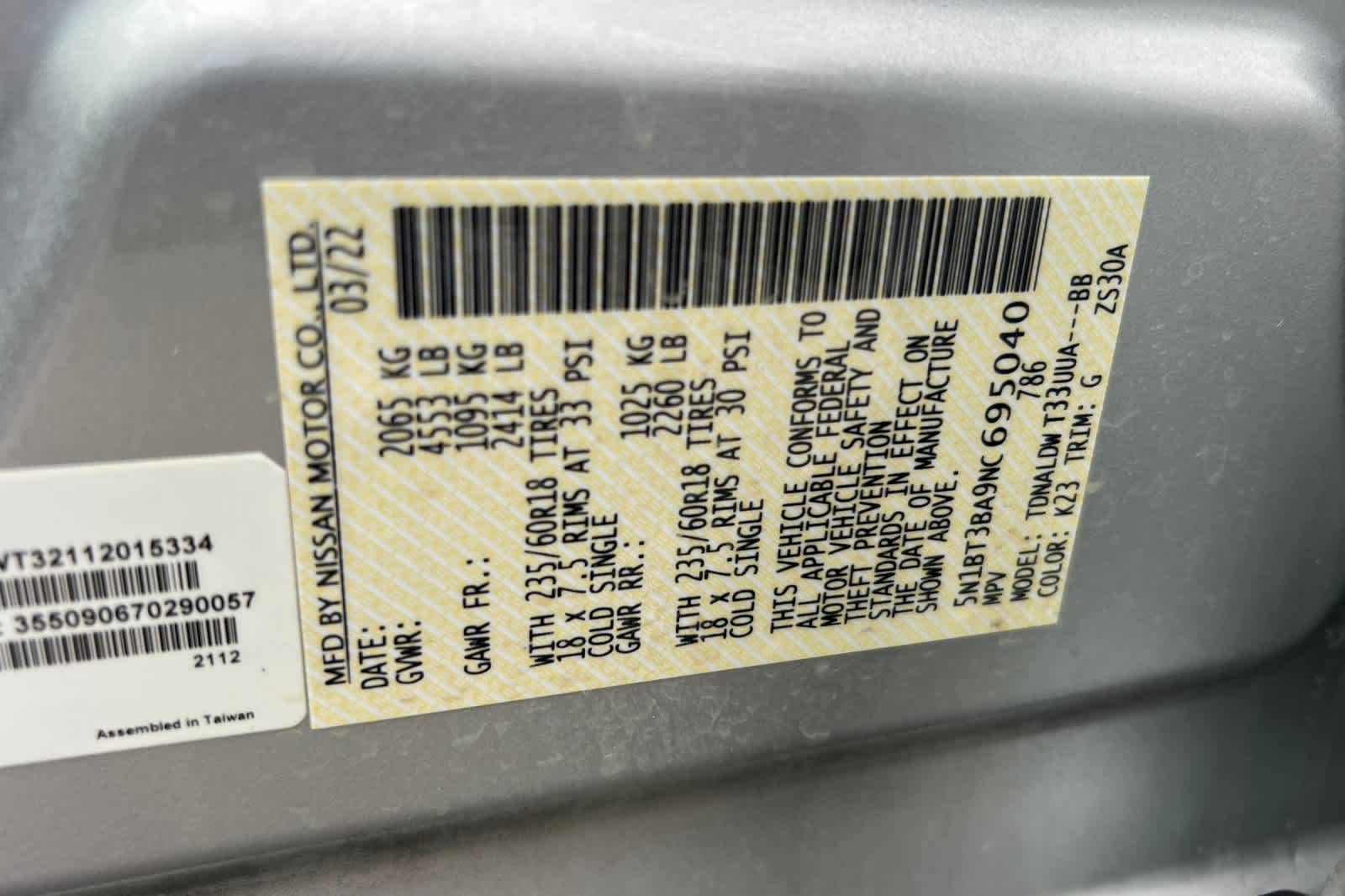 - VIN : 5N1BT3BA9NC695040