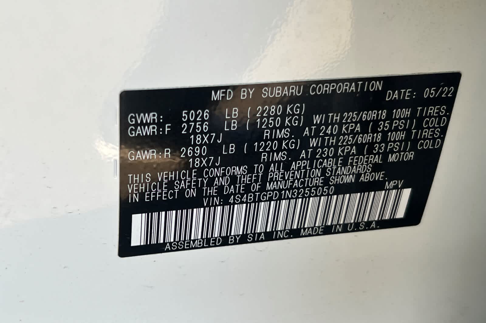 - VIN : 4S4BTGPD1N3255050