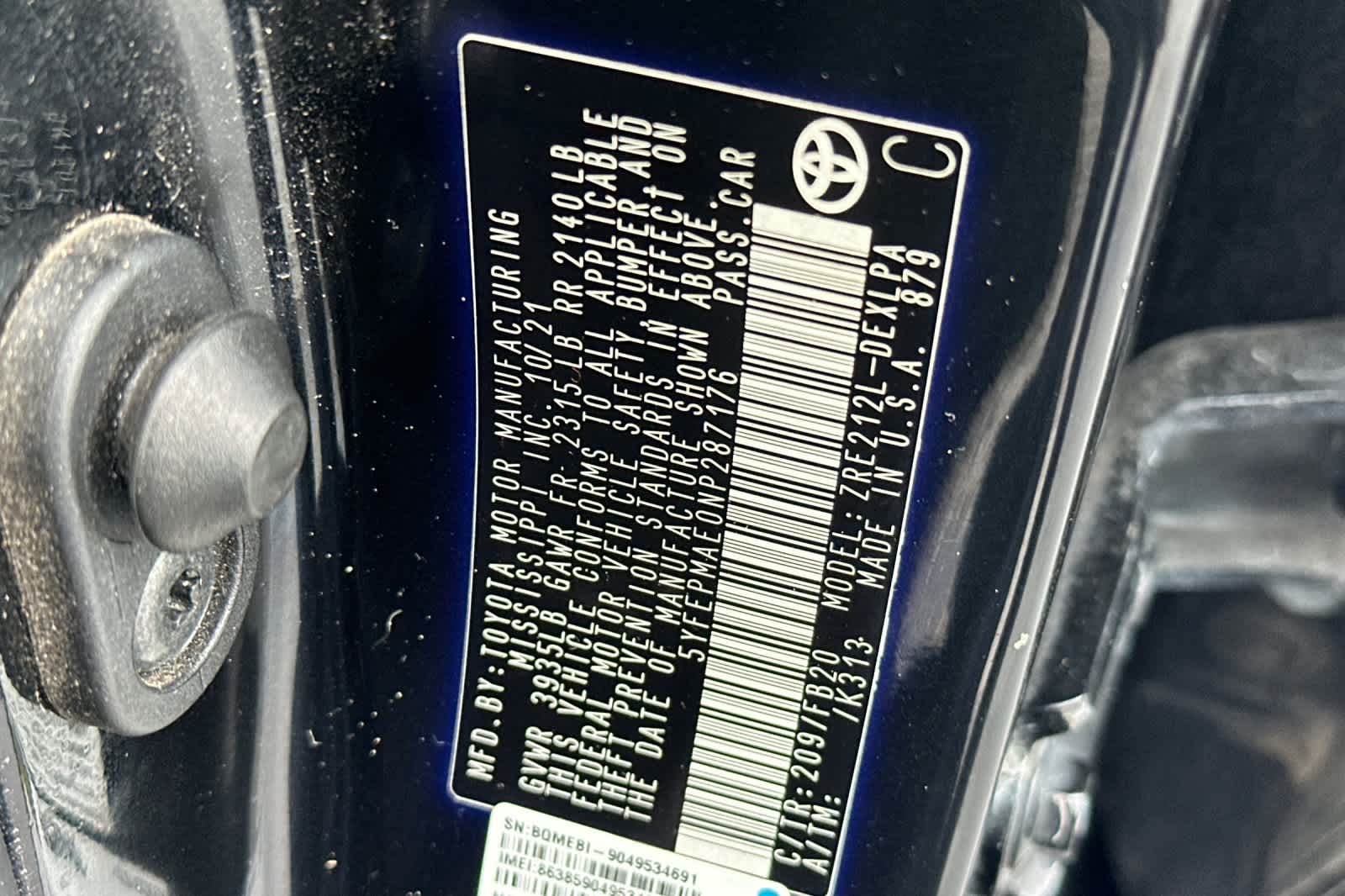 - VIN : 5YFEPMAE0NP287176
