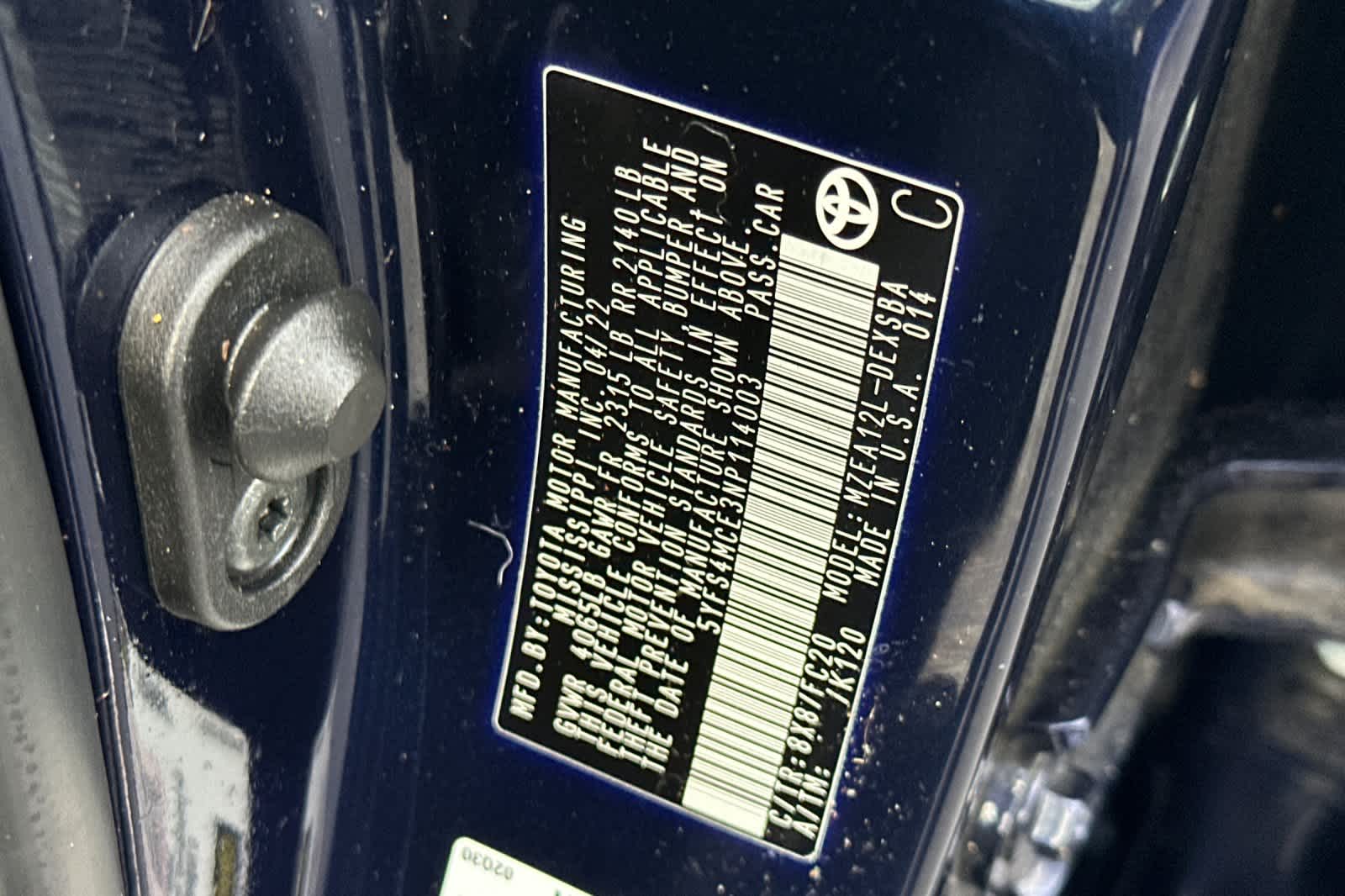 - VIN : 5YFS4MCE3NP114003