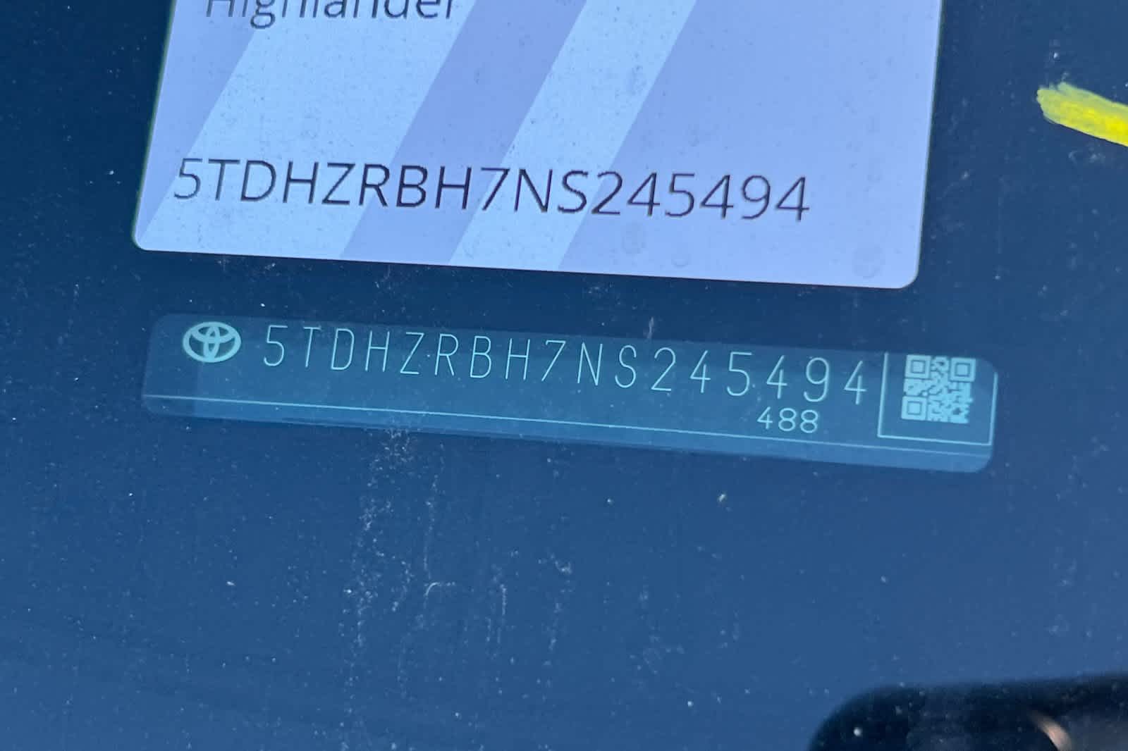 - VIN : 5TDHZRBH7NS245494