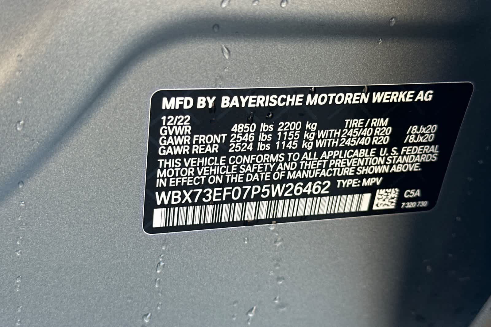 - VIN : WBX73EF07P5W26462