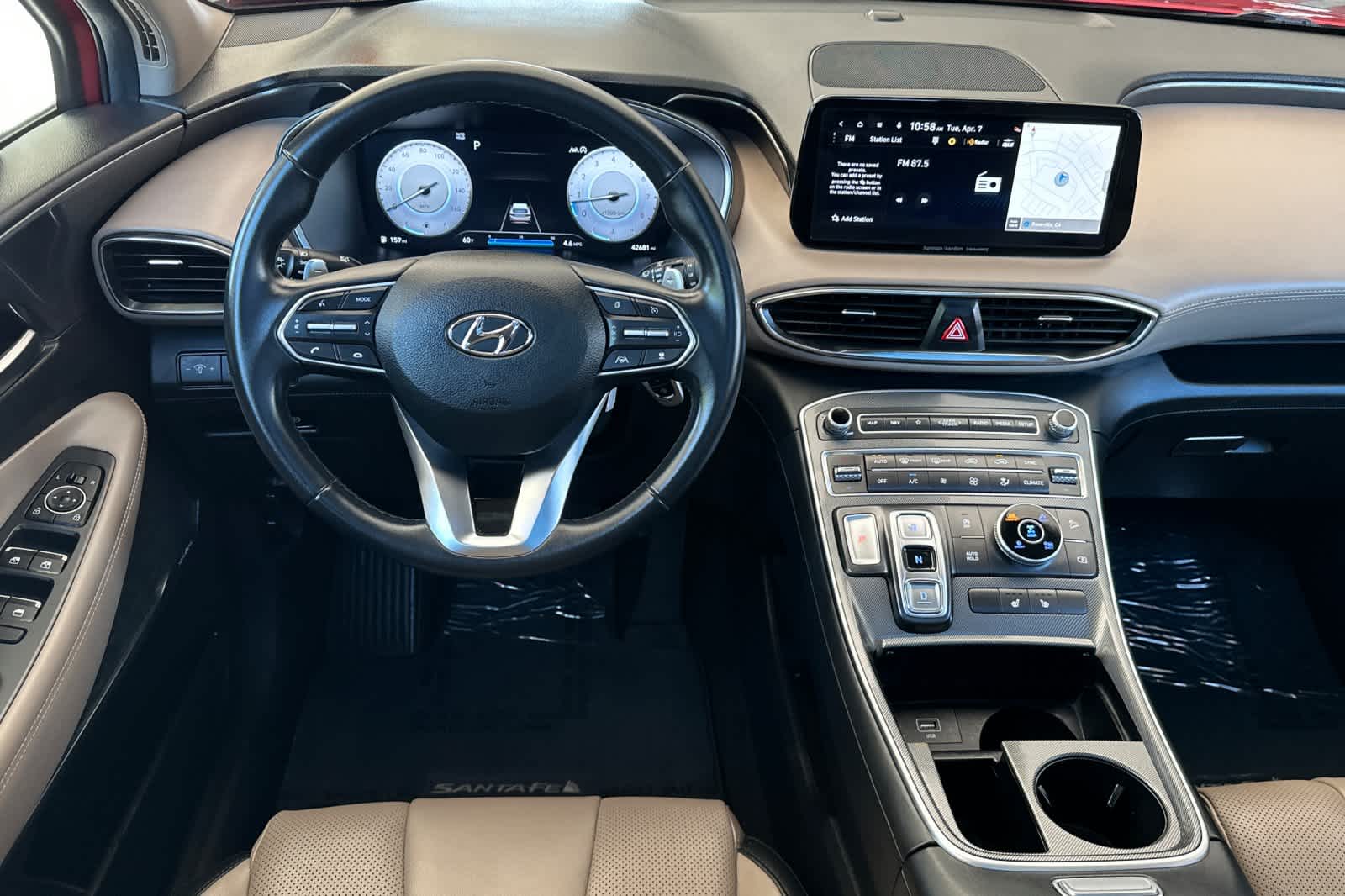Calypso Red 2023 Hyundai Santa Fe SEL AWD 8-Speed Automatic with SHIFTRONIC 2.5L I4 AWD, Beige Artificial Leather.