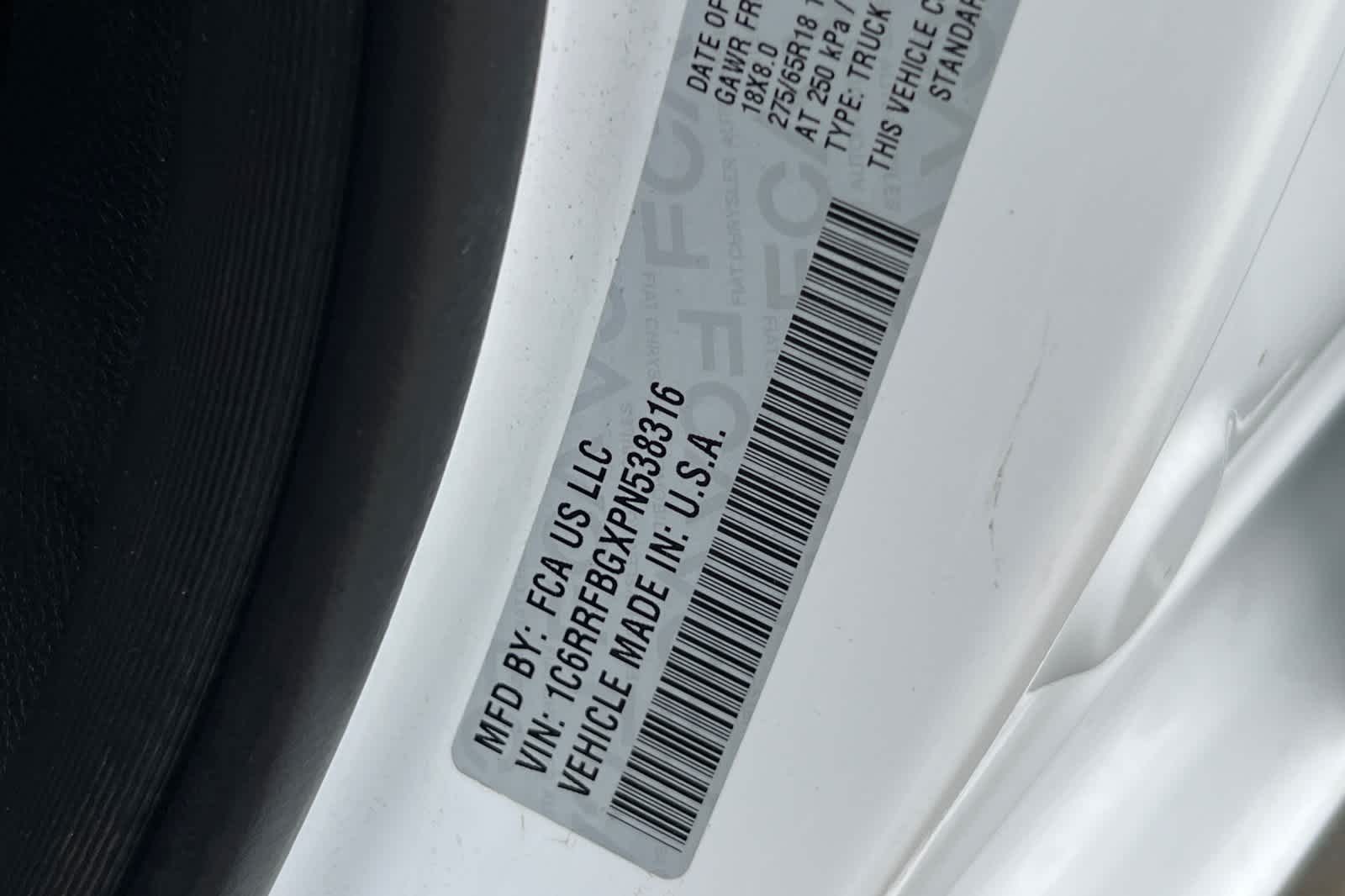 - VIN : 1C6RRFBGXPN538316