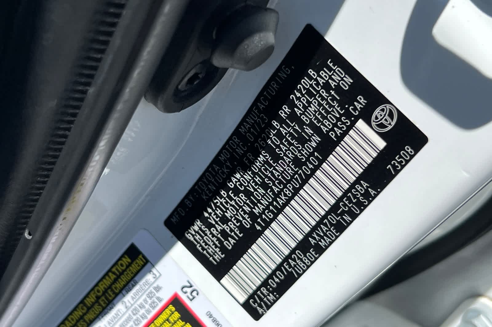 - VIN : 4T1G11AK8PU770401