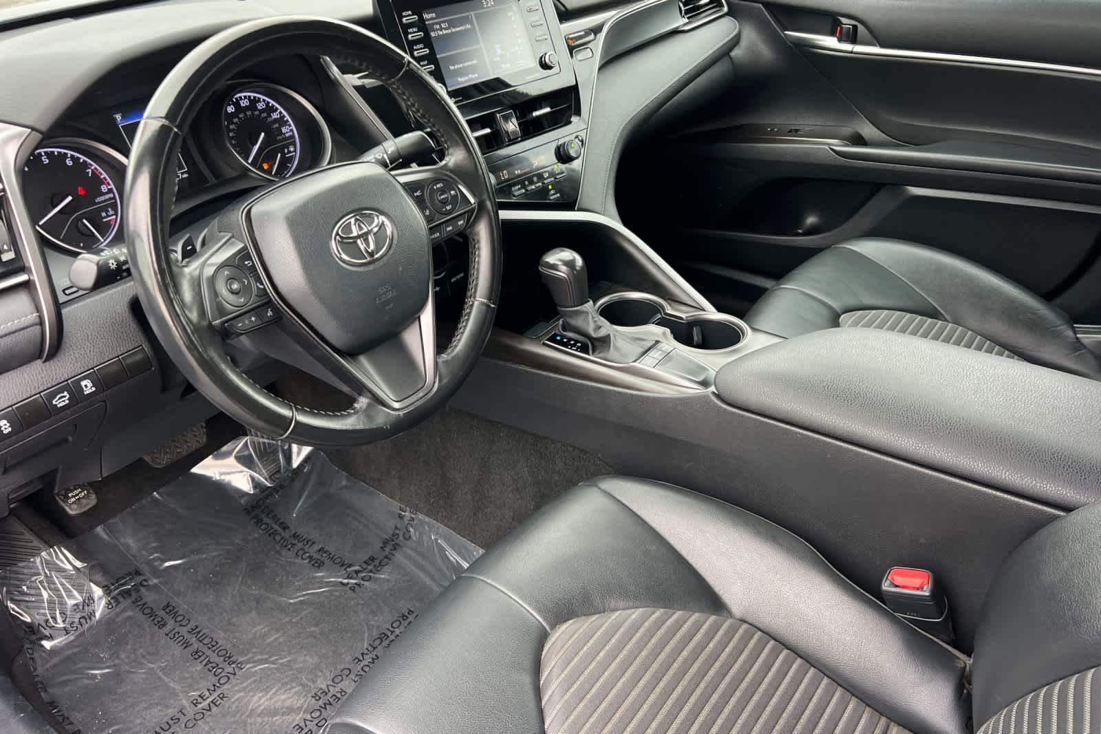 Midnight Black Metallic 2023 Toyota Camry SE FWD 8-Speed Automatic 2.5L I4 DOHC 16V Black Artificial Leather, ABS brakes, Active Cruise Control, Alloy wheels, Electronic Stability Control, Front dual zone A/C, Heated door mirrors, Illuminated entry, Low tire pressure warning, Remote keyless entry, Traction control.